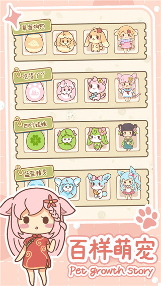 《萌宠养成物语》提供了各种各样的萌宠,玩家可以收集并照顾不同种类的宠物,每种宠物都有独特的外形、性格和需求。宠物种类可能包括猫咪、狗狗、兔子、鸟类等,甚至一些幻想类的宠物,如龙、独角兽等。