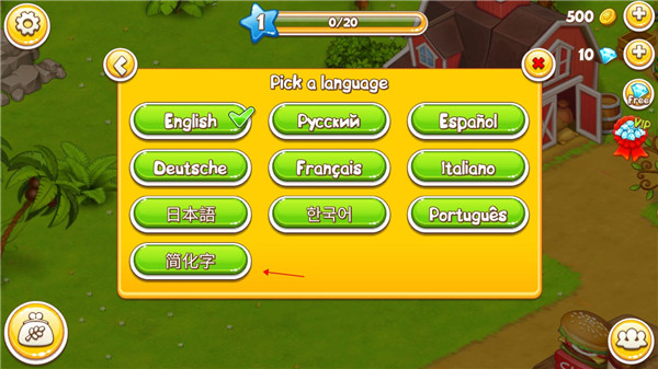 1、进入游戏后我们首先点击左上角齿轮按钮,进入设置界面。2、接着点击第红色方框位置,选择语言设置选项。3、然后选择简化字,确保游戏界面显示为中文。4、最后即可完成汉化,享受中文版的游戏体验。