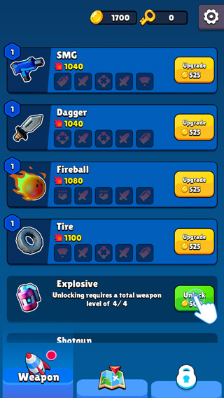 另外,游戏中获得的金币可用来在游戏主页升级武器和装备的攻击力,从而消灭更多的丧尸。