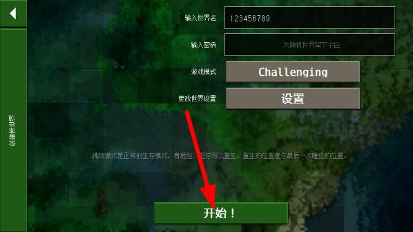 创建世界后点击【开始】