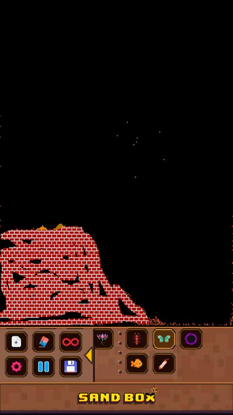 沙盒物理模拟器的最新版本,是一款趣味十足的粉末沙盒小游戏。游戏内包含丰富多样的元素,你能够将它们随意混合,探索它们之间奇妙的相互反应,见证它们如何转变成各种不同的形式。不仅如此,你还能在游戏里搭建强大的平台,尽情发展属于你的独特世界,随心放火、放光、放雨、放置植物……诸多操作都能在此实现。