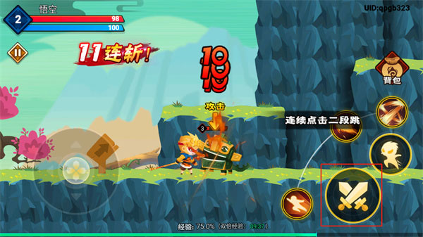 游戏右下角还有一个跳跃按钮,连续点击即可进行二段跳;