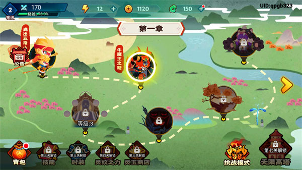 通过击杀敌人、解锁技能和升级能力等一系列操作,击败神兽,完成闯关挑战,逐步解锁新的章节内容。